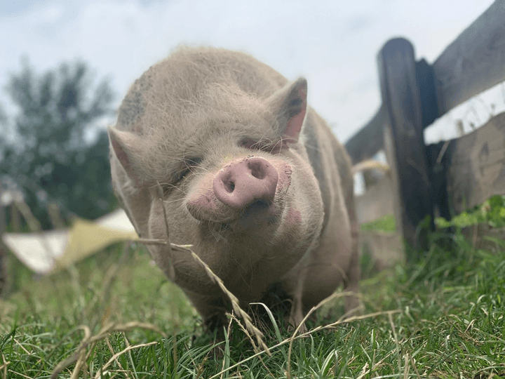 Paul, unser charmanter Minischwein-Eber, kam im Sommer 2021 zu uns. Er wurde etwa 2019 geboren und hatte bis dahin bei Privatleuten in der Eifel gelebt. Doch seine Schweinekumpels waren nach und nach verstorben, und Paul blieb alleine zurück. Als er bei uns ankam, war er ziemlich mager und etwas scheu – aber das ist längst Vergangenheit!